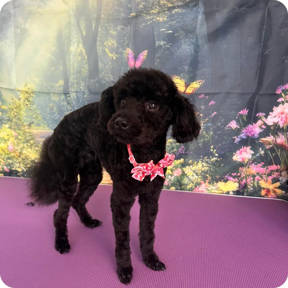 Bath, blow-dry, breed-specific haircut, ear clean, nail trim & finishing spritz. The complete head-to-tail experience for your dog.